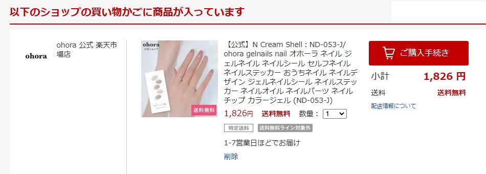 購入するサイトによって値段や届く速さが違うのか?が気になって、今回はじめて楽天市場でOhoraジェルネイルシールを購入してみました。