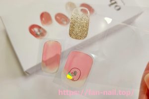 実際にジェルネイルシールを付けた画像を見せたかったのですが、今回も1回分に満たない枚数しか残っていなかったので、他のデザインとミックスしました。