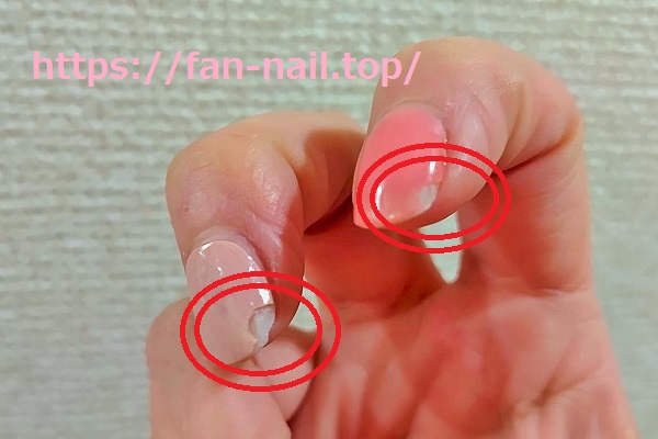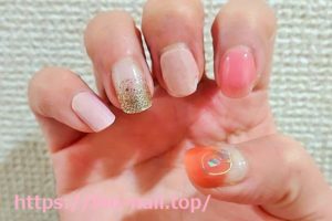 今までの中でもけっこう持ちが良かったほうですが、でも、このボロボロかげんを見ると、やっぱり2週間くらいでオフしていた方が爪の為にも良いかもと思いました。